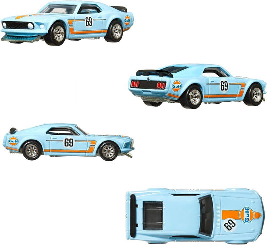 Hot Wheels Premium 2 Pack 2023 1969 Ford Mustang Boss 302 & 2014 Custom Mustang Gulf Light Blue 1:64