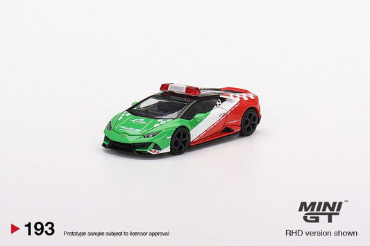Mini GT Box Version Lamborghini Huracan EVO Bologna Airport 2020 Follow-Me Car 1:64