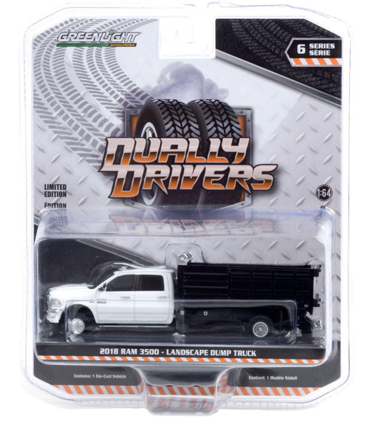 Greenlight Dually Drivers 2018 Ram 3500 Dually Landscaper Dump Truck White 1:64