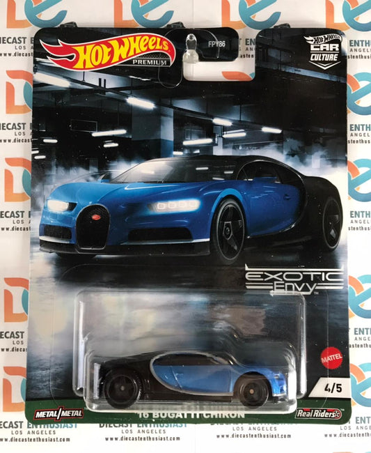 Hot Wheels Exotic Envy 16 Bugatti Chiron Blue with Sterling Protector Case 1:64