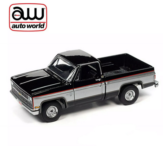 Auto World Muscle Trucks 1981 Chevy Silverado10 Fleetside Midnight Black Silver 1:64