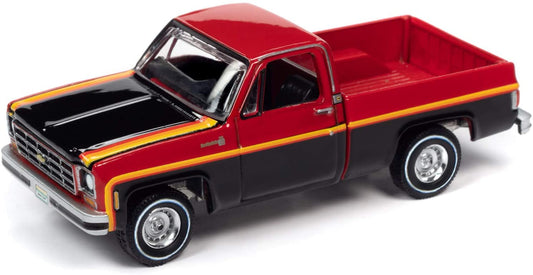 Auto World Hemmings 1979 Chevy C10 Scottsdale Fleetside Red Black 1:64