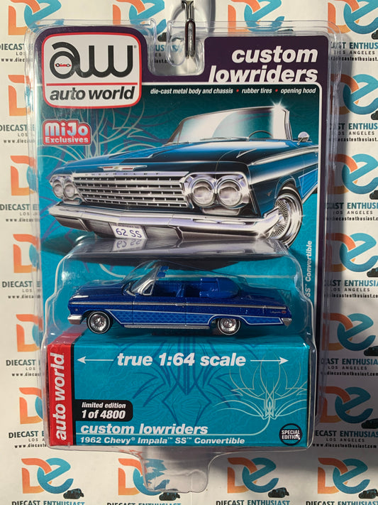 Auto World Mijo Exclusive Custom Lowrider 1962 Chevy Impala Convertible Blue 1:64