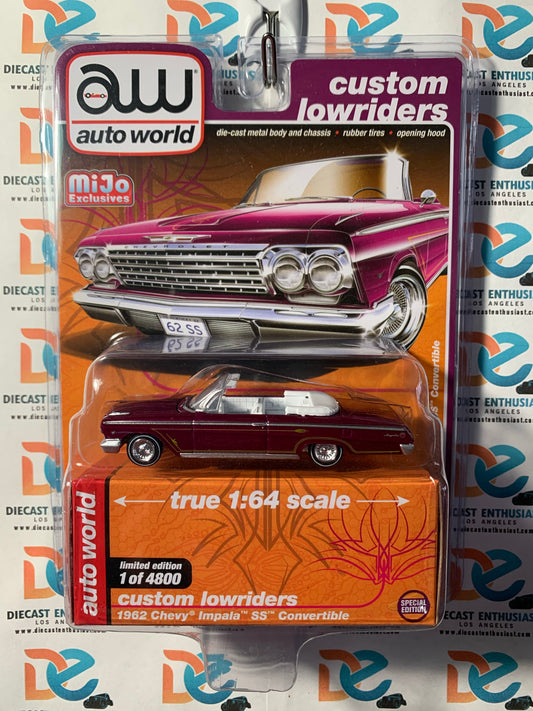 Auto World Mijo Exclusive Custom Lowriders 1962 Chevy Impala Convertible Plum 1:64