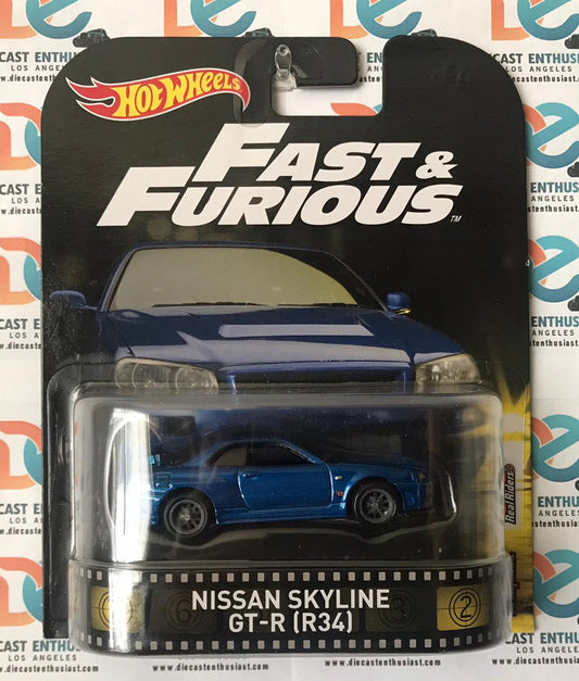 Hot Wheels Retro Fast & Furious Nissan Skyline GTR R32 Blue with Sterling Protector Case 1:64