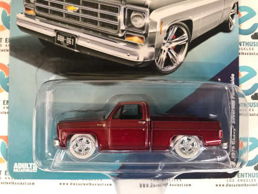 CHASE Auto World Diecastz Exclusives 1978 Chevy Cheyenne C10 Fleetside Pink 1:64