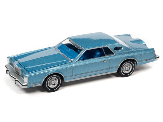 Auto World 1977 Lincoln Continental Coupe Mark V Med Blue Diamond Bright 1:64