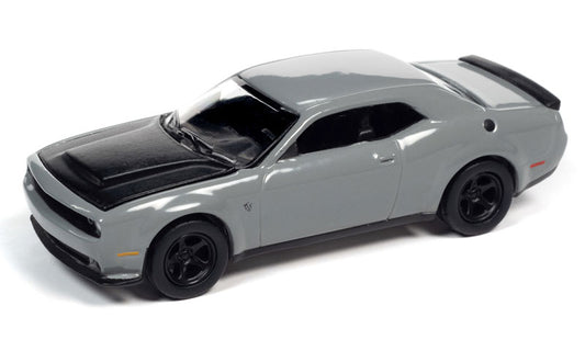 Auto World 2018 Dodge Challenger Demon Destroyer Grey w/Flat Black Hood 1:64