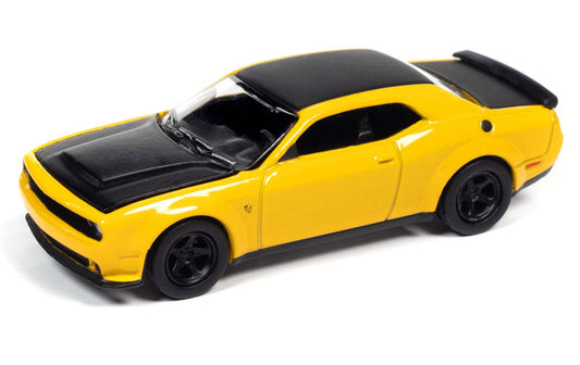 Auto World 2018 Dodge Challenger Demon Yellow Jacket w/Flat Black Hood 1/64