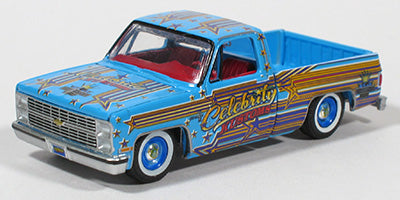Auto World 2022 Las Vegas Supercon Exclusives 1983 Chevy Silverado Celebrity Kustoms Blue 1:64