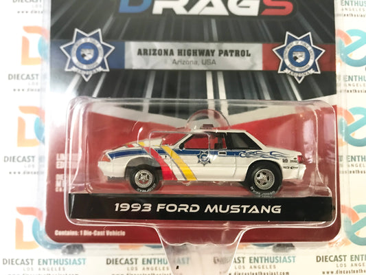 Greenlight Exclusives Midnight Drags Arizona Highway Patrol 1993 Ford Mustang White 1:64