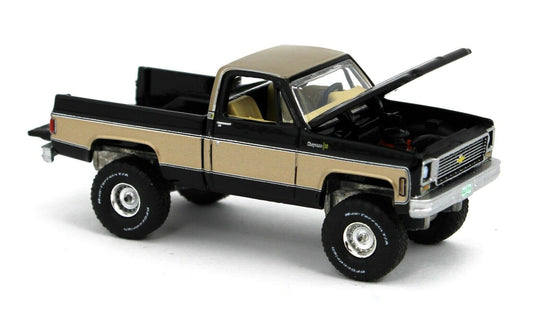 Auto World Exclusives 1973 Chevy Cheyenne K10 Fleetside Black Gold 1:64