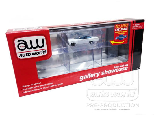Auto World Interlocking Gallery Showcase 6 Cars with 1962 Chevy Impala Convertible White 1:64