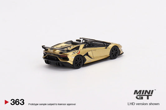 Mini GT Box Version 363 Lamborghini Aventador SVJ Roadster Oro Elios Gold 1:64