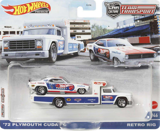 NEW LOOSE DAMAGE CARD & BUBBLE Hot Wheels Team Transport 72 Plymouth Cuda FC & Retro Rig Snakes White 1:64