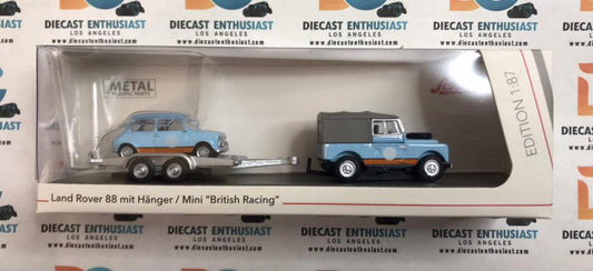 Schuco Land Rover 88 mit hanger with Mini British Racing Gulf Color 1:87 HO