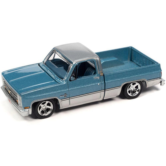 Auto World Muscle Truck 1985 Chevy Silverado Fleetside Light blue Silver Poly 1:64