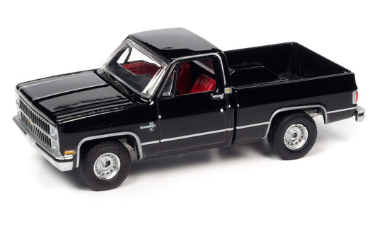 Auto World Muscle Trucks 1981 Chevy Silverado10 Fleetside Midnight Black Silver 1:64