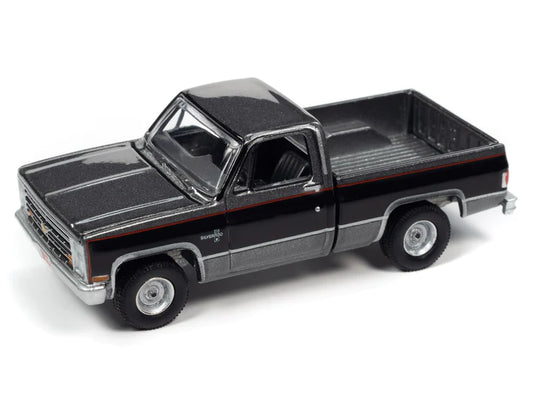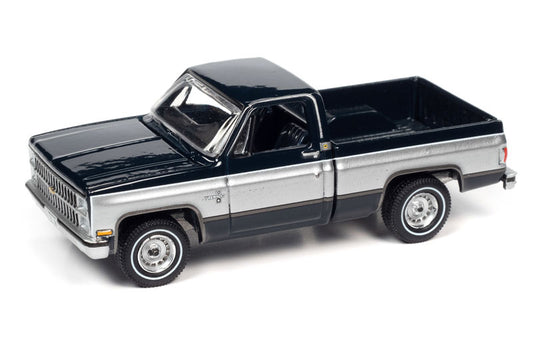 Auto World Muslce Trucks 1982 Chevrolet Silverado 10 Midnight Blue Body w/Silver Sides 1:64
