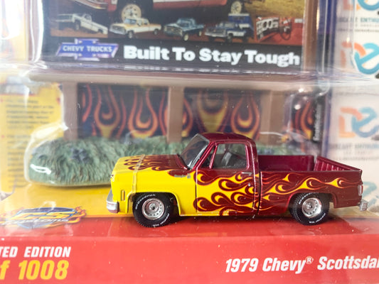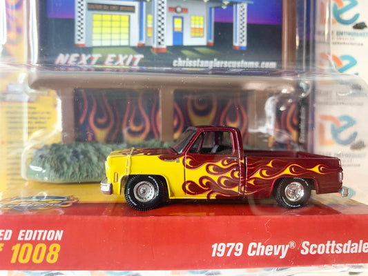 CHASE Auto World CS Customs Exclusives Billboard Diorama 1979 Chevy Scottsdale Blue Yellow Flames 1:64