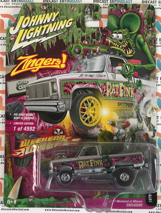 Johnny Lightning Exclusives Zingers! Rat Fink 1983 Chevy Silverado Silver 1:64