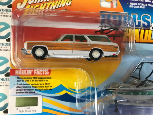 CHASE Johnny Lightning Hulls & Haulers 1973 Chevy Caprice with Boat & Trailer Light Green Poly 1:64
